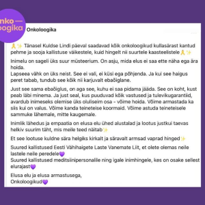 Organisatsioon on loodud juba 1992. aastal eesmärgiga aidata vähihaigeid lapsi ning nende vanemaid. Eesti Vähihaigete Laste Vanemate Liit koondab vähihaigete laste vanemaid, kes tunnevad vajadust kuuluda vähihaigete laste vanemate kogukonda, saada tuge ning olla toeks ka teistele vanematele.